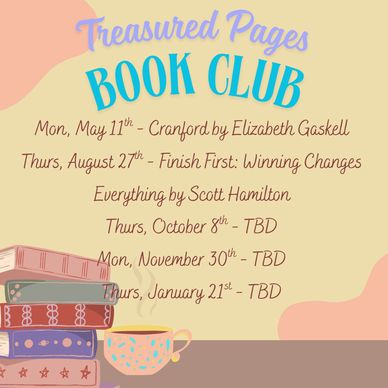 Ladies, 18 and older, are welcome to join us for Treasured Pages Book Club. We meet at 6:30pm. To find out out if there is still space available and learn more, please send an email to shannontobiaslibrary.com with "Treasured Pages" in the subject line.